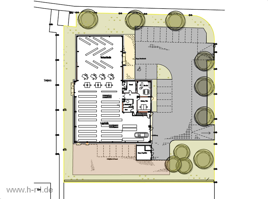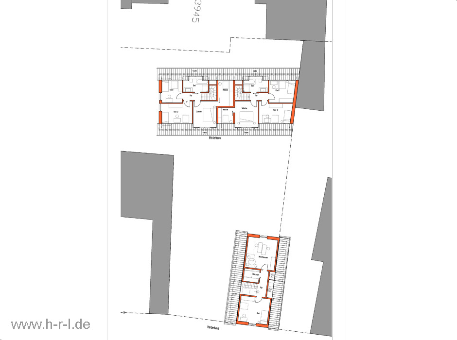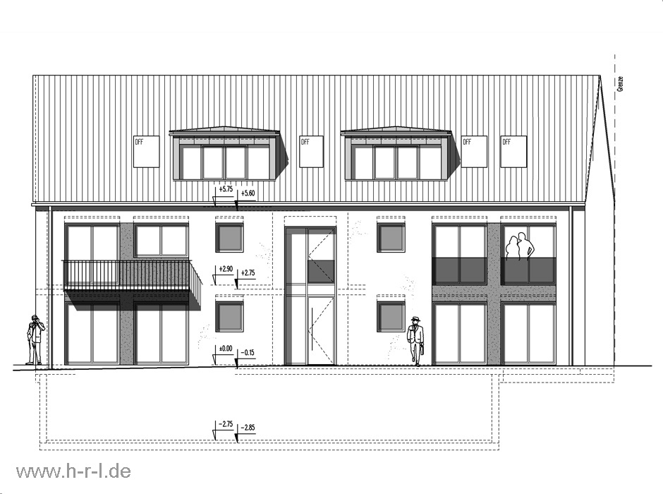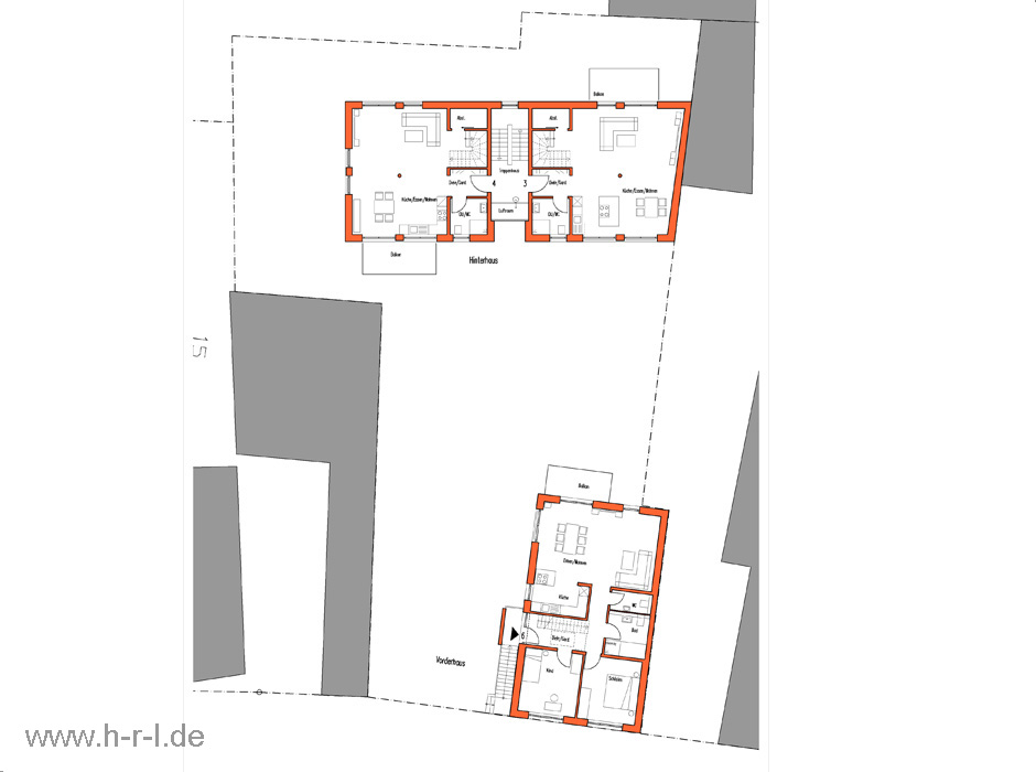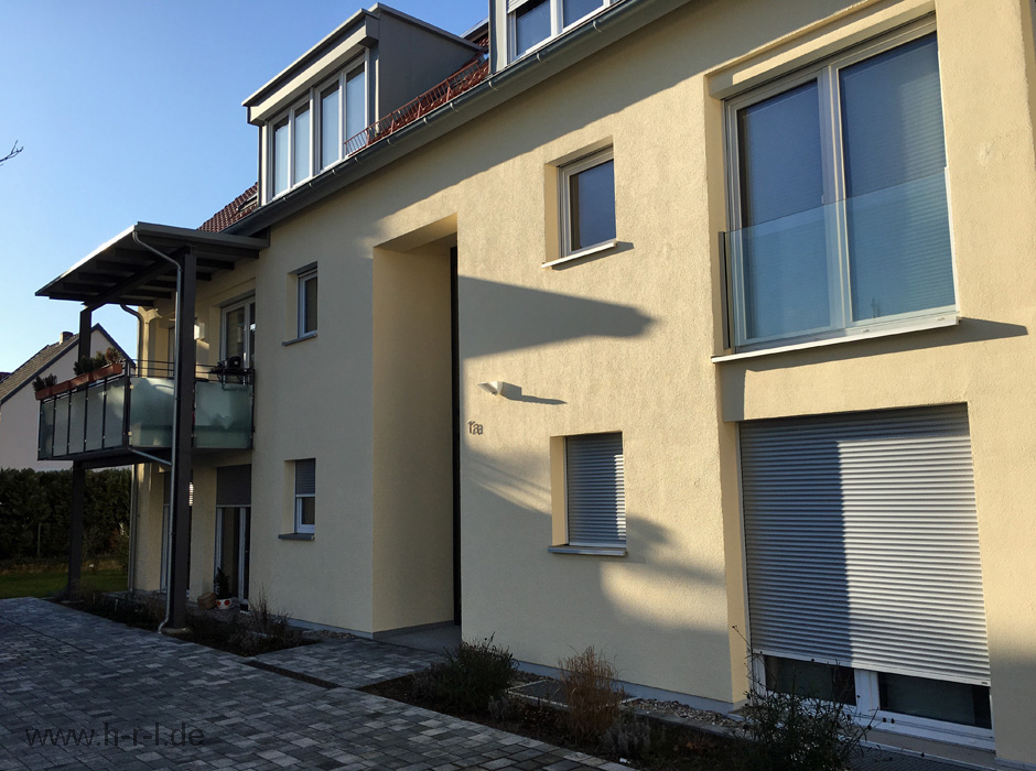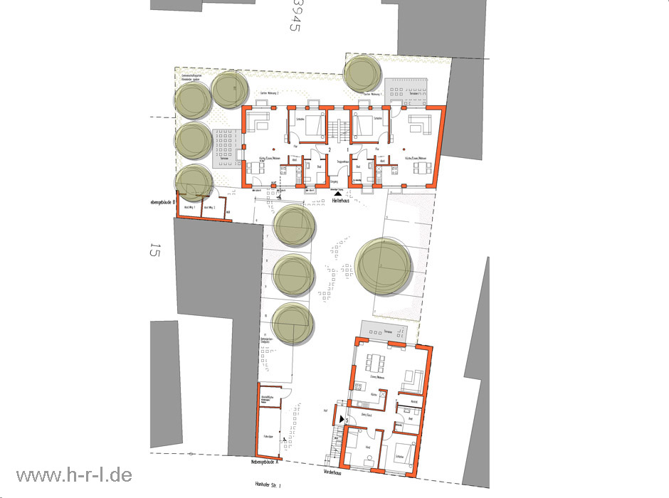 Neubau von 2 Mehrfamilienhäusern um einen gemeinsamen Hof herum.