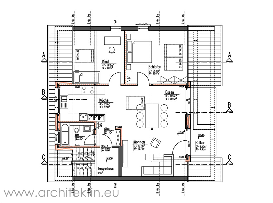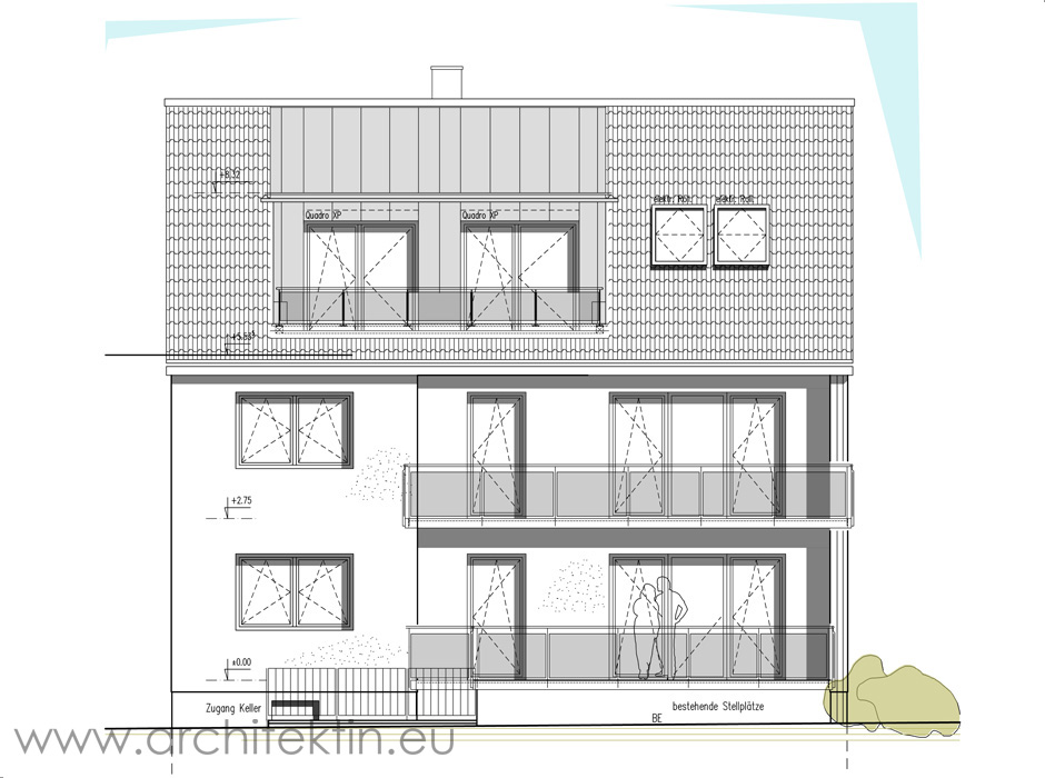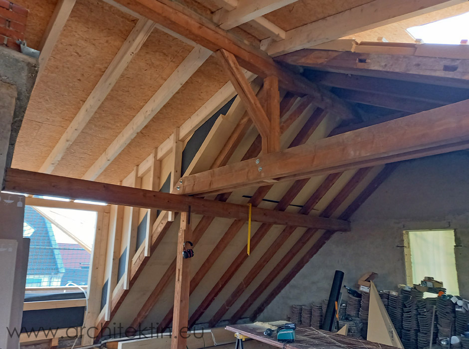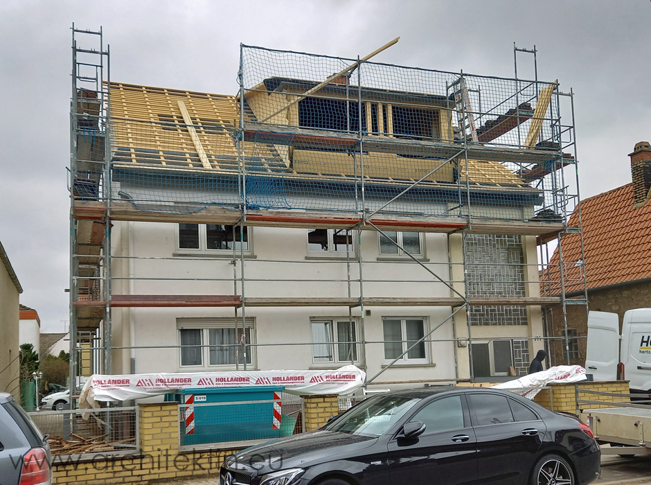 Mehrfamilienhaus: Ausbau des Dachstuhls und Kernsanierung des Gebäudes.